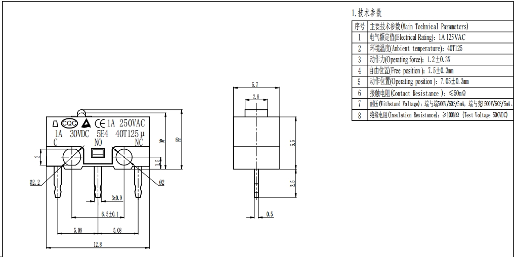 Utilizzando un meccanismo di attivazione rapida brevettato a scatto, il tempo di risposta del trigger è ≤8 ms, migliorando le prestazioni del 25% rispetto ai microinterruttori tradizionali. La corsa del grilletto è controllata con precisione tra 0,3 e 1,0 mm, con un intervallo di forza operativa di 1,5-4 N. Il feedback della pressione è chiaro e nitido, senza blocchi o gioco libero, consentendo un controllo preciso del "tocco leggero per connettere, rilasciare per rompere", perfettamente adatto per scenari che richiedono un'elevata sensibilità del grilletto. I contatti sono realizzati in lega di argento-stagno di elevata purezza e lavorati con saldatura a punti precisa, con una resistenza di contatto iniziale di ≤30 mΩ. Il carico nominale supporta 1 A/250 V CA e 3 A/125 V CA, prevenendo efficacemente il riscaldamento o la bruciatura dei contatti quando passa la corrente.