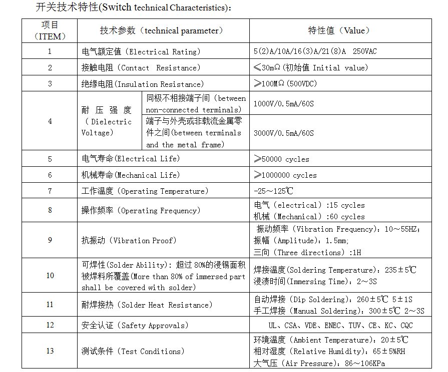 | 10 | Abilità di saldatura: Saldatura a immersione: 260±5℃ 5±1S Frequenza di vibrazione: 10 ~ 55 HZ; |